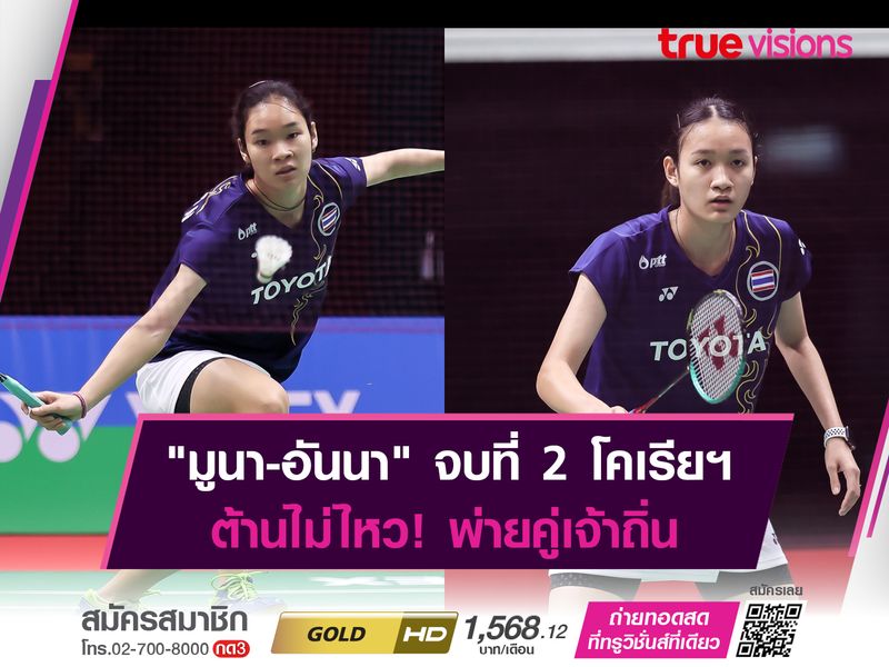 "มูนา-อันนา" เบญญาภา กับ นันทกาญจน์ เอี่ยมสอาด หญิงคู่มืออันดับ 34 ของโลก ทำได้ดีที่สุดเพียงเเค่ "รองเเชมป์" ในการเเข่งขันแบดมินตัน "โคเรีย โอเพ่น 2022" รอบชิงชนะเลิศ ที่ประเทศเกาหลีใต้ หลังจากพ่ายต่อ "คู่เจ้าถิ่น" 2-0 เกม เมื่อวันอาทิตย์ที่ผ่านมา(10 เมษายน)