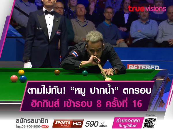 ส่วนทาง "หมู ปากน้ำ" ร่วงตกรอบ 16 เป็นครั้งที่ 2 ในชีวิต หลังจากเมื่อปี 2020 พลาดท่าพ่าย "ฉลามหิน" มาร์ค เซลบี้ เเบบหวุดหวิด 12-13 เฟรม รับเงินรางวัลปลอบใจ 30,000 ปอนด์ หรือประมาณ 1.3 ล้านบาท