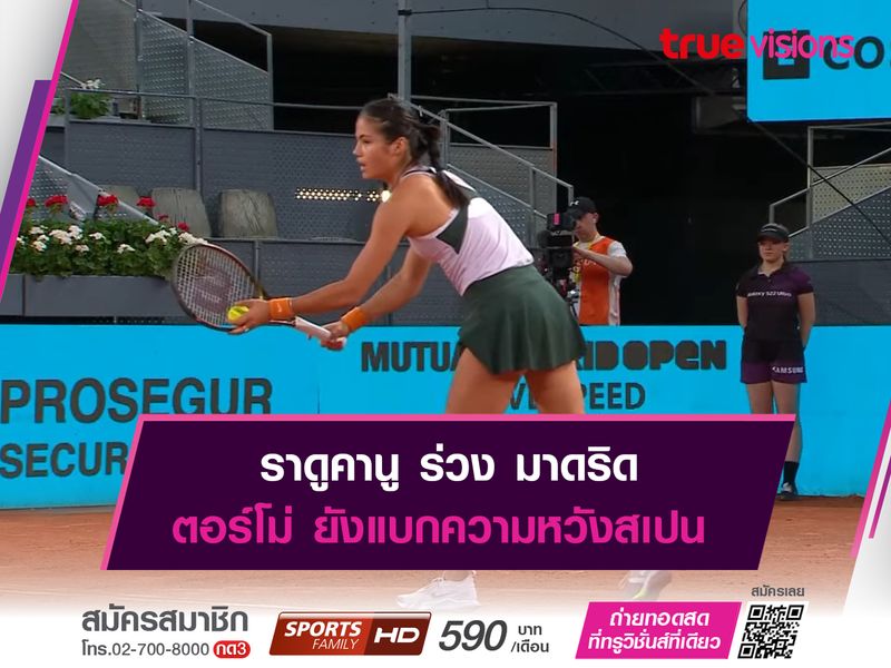 “ราดูคานู” ร่วงตกรอบ “มาดริด โอเพ่น” ส่วนความหวังสเปน “ซอร์ริเบส ตอร์โม่” ยังผ่านเข้ารอบก่อนรองชนะเลิศ