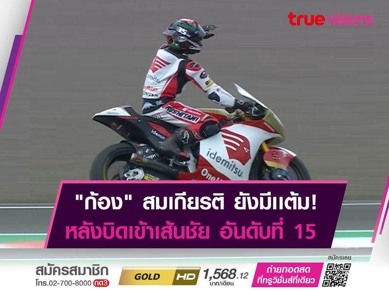"ก้อง" สมเกียรติ จันทรา ยอดนักบิดชาวไทยจาก "อิเดมิตสึ ฮอนด้า ทีม เอเชีย" ควบรถคู่ใจเข้าเส้นชัยเป็นอันดับที่ 15 ในการเเข่งขัน "โมโตทู" สนามที่ 10 ของฤดูกาล ในรายการ "เยอรมัน กรังด์ปรีซ์"