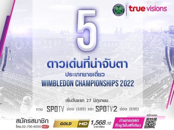 แกรนด์แสลม วิมเบิลดัน ถ่ายทอดสดอาทิตย์ที่ 26 มิ.ย. - 10 ก.ค. ทางช่อง ทรูเทนนิส (670)