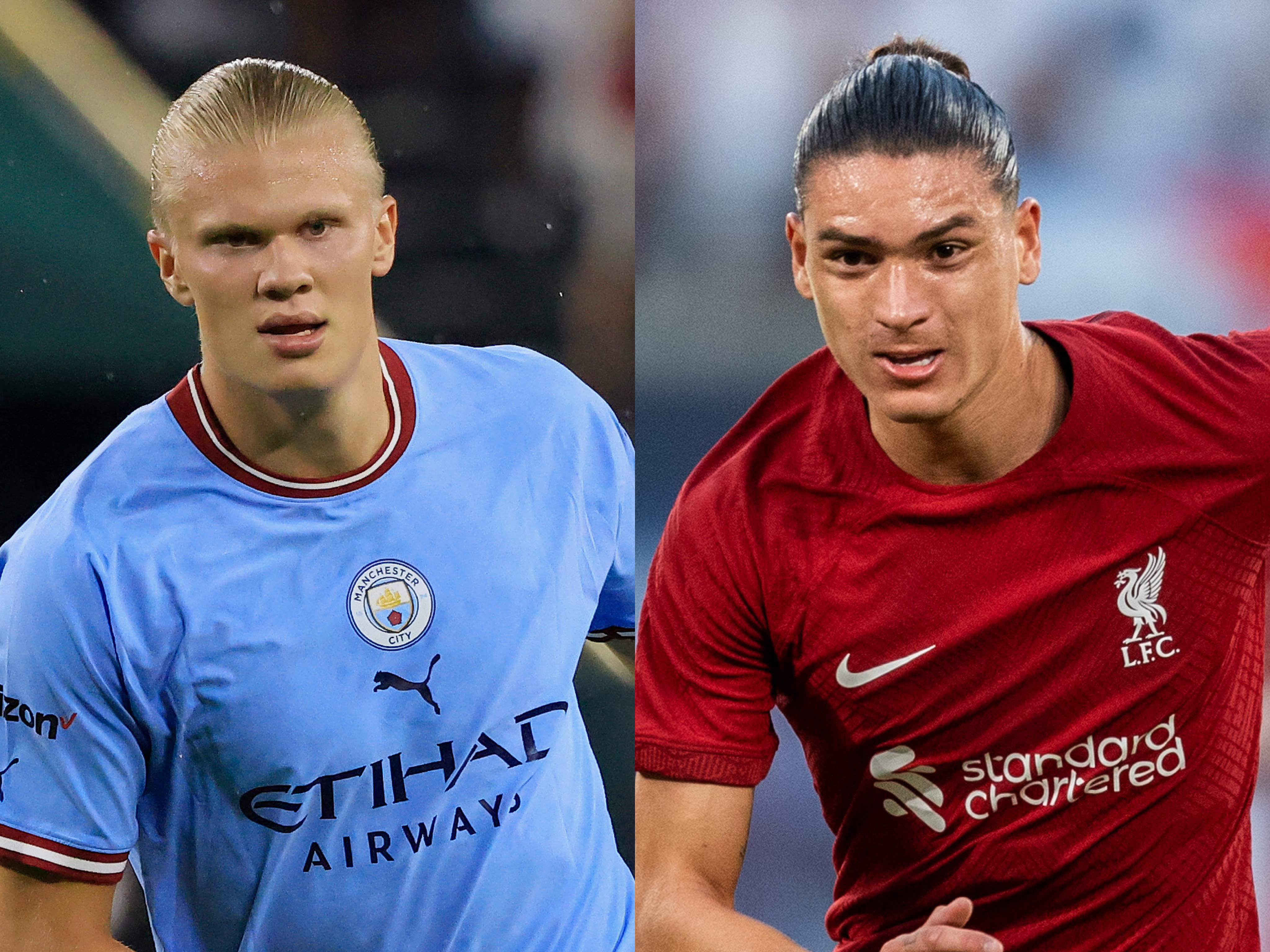 แน่นอนว่านอกจากการที่ แมนฯ ซิตี้ และ ลิเวอร์พูล จะต้องวัดผลงานกันแล้ว กองหน้าของทั้งสองทีมต่างก็ต้องถูกนำมาเปรียบเทียบผลงานกันอย่างช่วยไม่ได้ นั่นก็คือ เออร์ลิ่ง ฮาแลนด์ วัย 22 ปีของ แมนฯ ซิตี้ ที่เพิ่งย้ายมาร่วมทีมด้วยค่าตัว 51 ล้านปอนด์ และ ดาร์วิน นูนเญซ วัย 23 ปีที่ย้ายมาด้วยราคา 85 ล้านปอนด์ (รวมโบนัส)