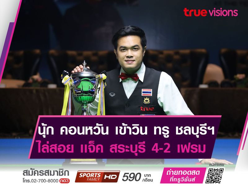 สนุกเกอร์อาชีพเก็บสะสมคะแนน ดิวิชั่น 1 รายการที่ 6 “อีมิเเน้นท์ แอร์-ทรู ชลบุรี คัพ 2022” ชิงเงินรางวัลรวม 1,134,000 บาท ที่เดอะไทน์ รีสอร์ต บางแสน จ.ชลบุรี เมื่อวันที่ 30 ก.ค. ในรอบชิงชนะเลิศ แข่งขันระบบ 4 ใน 7 เฟรม “แจ๊ค สระบุรี” เดชาวัต พุ่มแจ้ง อดีตแชมป์สมัครเล่นโลกและแชมป์สนุกเกอร์อาชีพสนามแรก จ.กาญจนบุรี พบกับ “นุ้ก คอนหวัน” ปรมินทร์ ด่านจิรกุล แชมป์สนุก เกอร์ 6 แดงประเทศไทย และแชมป์สนาม 2 ที่ จ.ตรัง