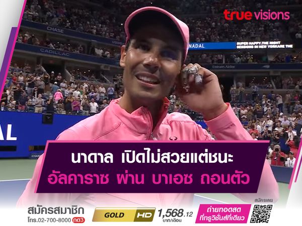 “นาดาล” เปิดตัวไม่สวย แต่ชนะรอบแรก “ยูเอส โอเพ่น” และดาวรุ่งตัวเต็ง “อัลคาราซ” ผ่าน “บาเอซ” ที่ขอถอนตัวเพราะอาการบาดเจ็บ
