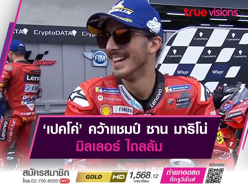“เปคโค่” คว้าแชมป์ “ซาน มาริโน่ กรังด์ปรีซ์” ทำสถิติ 4 สนามติดต่อกัน “มิลเลอร์” พลาด ไถลล้มออกนอกแทร็ค