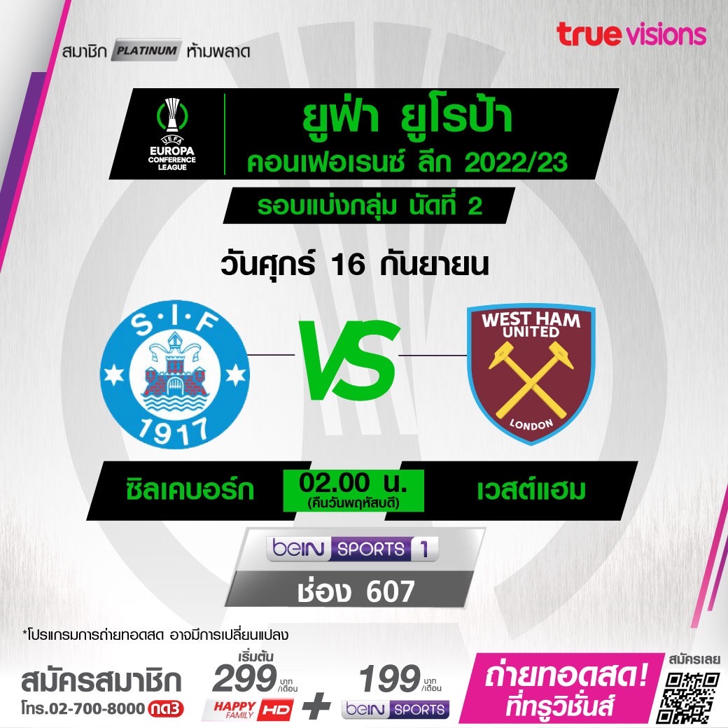 Sikeborg vs. West Ham เวลา 02.00-04.00 ทางช่อง beIN Sports 1 (607)