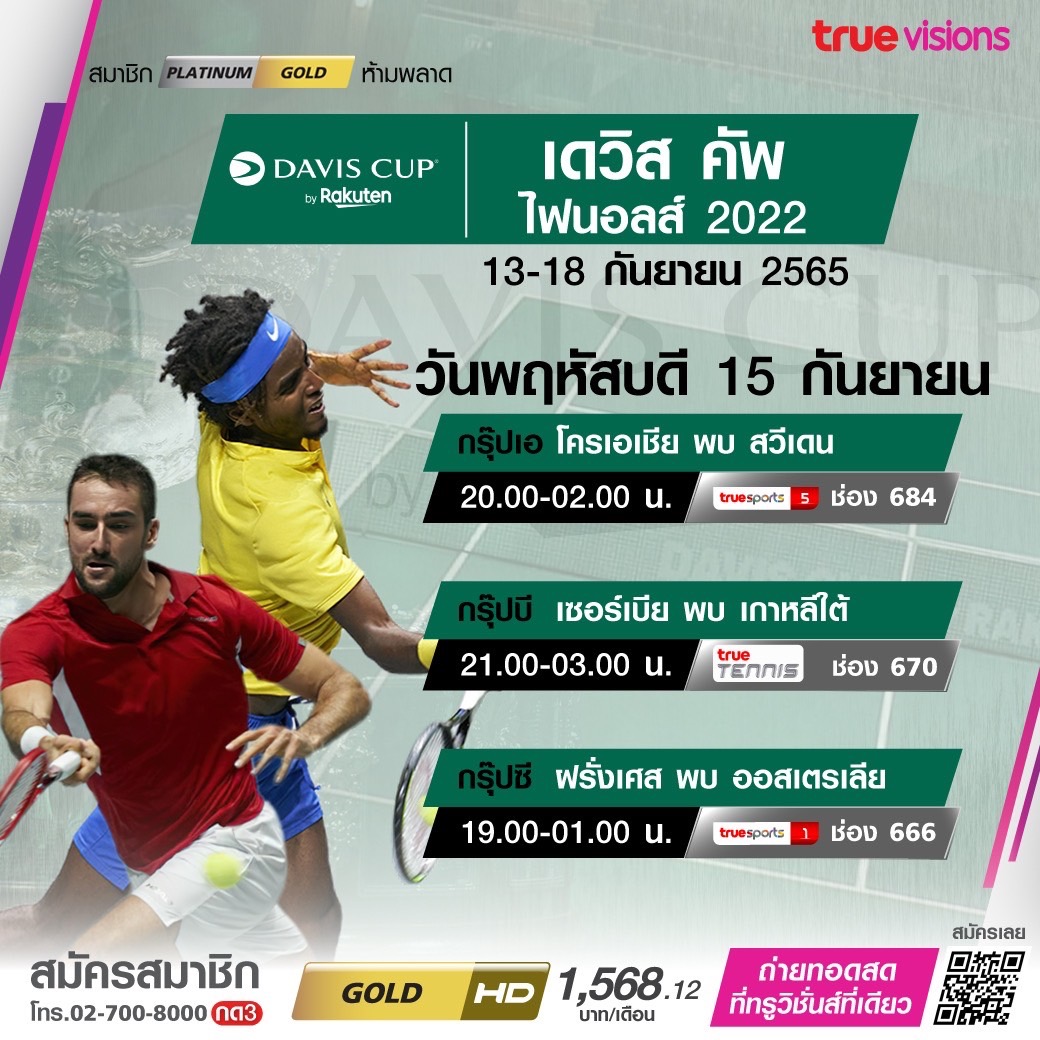 เทนนิสรายการใหญ่ระดับโลก เดวิส คัพ ไฟนอลส์ 2022 ศึกแห่งศักดิ์ศรี ที่เดิมพันความสำเร็จกันด้วยชนะของทีมชาติ ดวลกันสุดมันกับรอบ 16 ทีมสุดท้าย สดจุใจ ชมสด ทางทรูวิชั่นส์ ที่เดียว