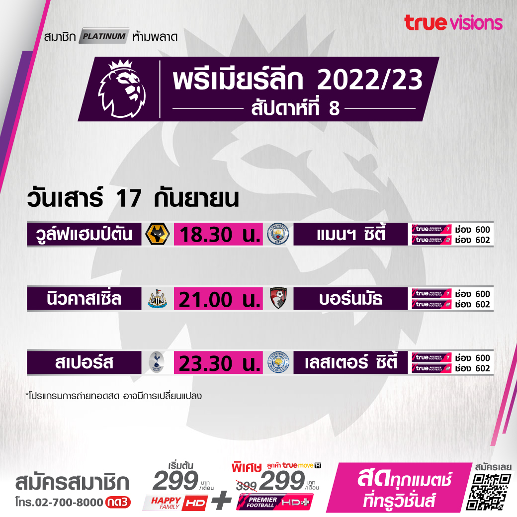 Newcastle vs. Bournemouth เวลา 21.00-23.00 ทางช่อง TPF 1(600) /TPF 2 (602)
