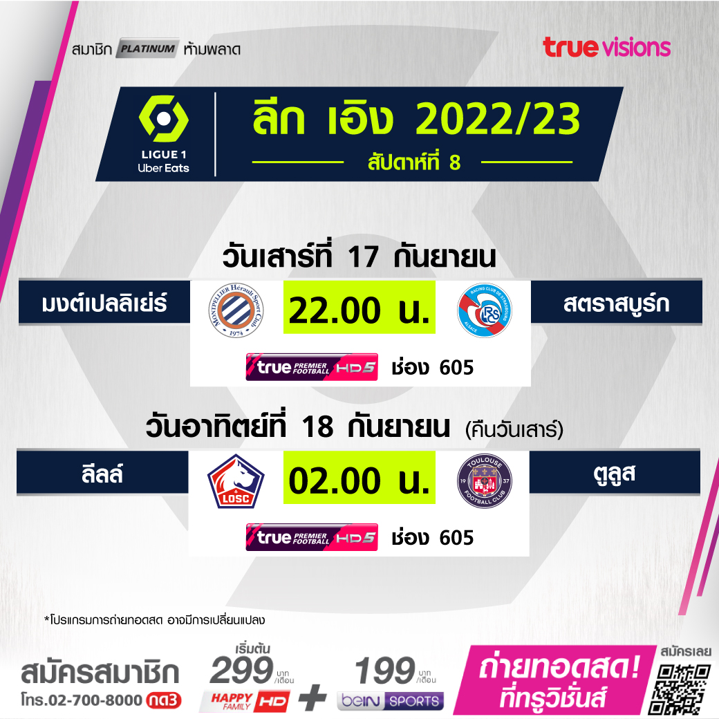 Montpellier vs. Strasburg เวลา 22.00-00.00 ทางช่อง TPF 5 (605)