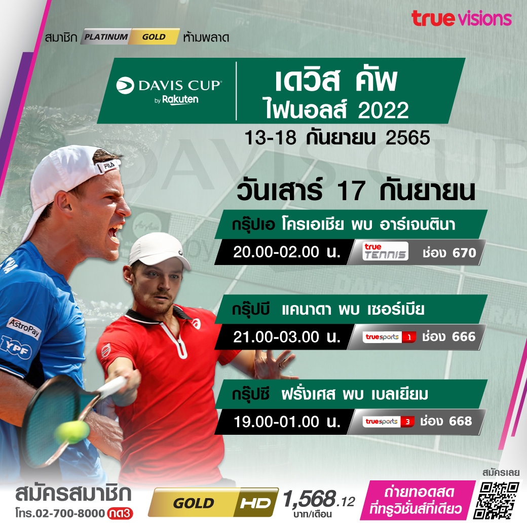 เทนนิสรายการใหญ่ระดับโลก เดวิส คัพ ไฟนอลส์ 2022 ศึกแห่งศักดิ์ศรี ที่เดิมพันความสำเร็จกันด้วยชนะของทีมชาติ ดวลกันสุดมันกับรอบ 16 ทีมสุดท้าย สดจุใจ ชมสด ทางทรูวิชั่นส์ ที่เดียว