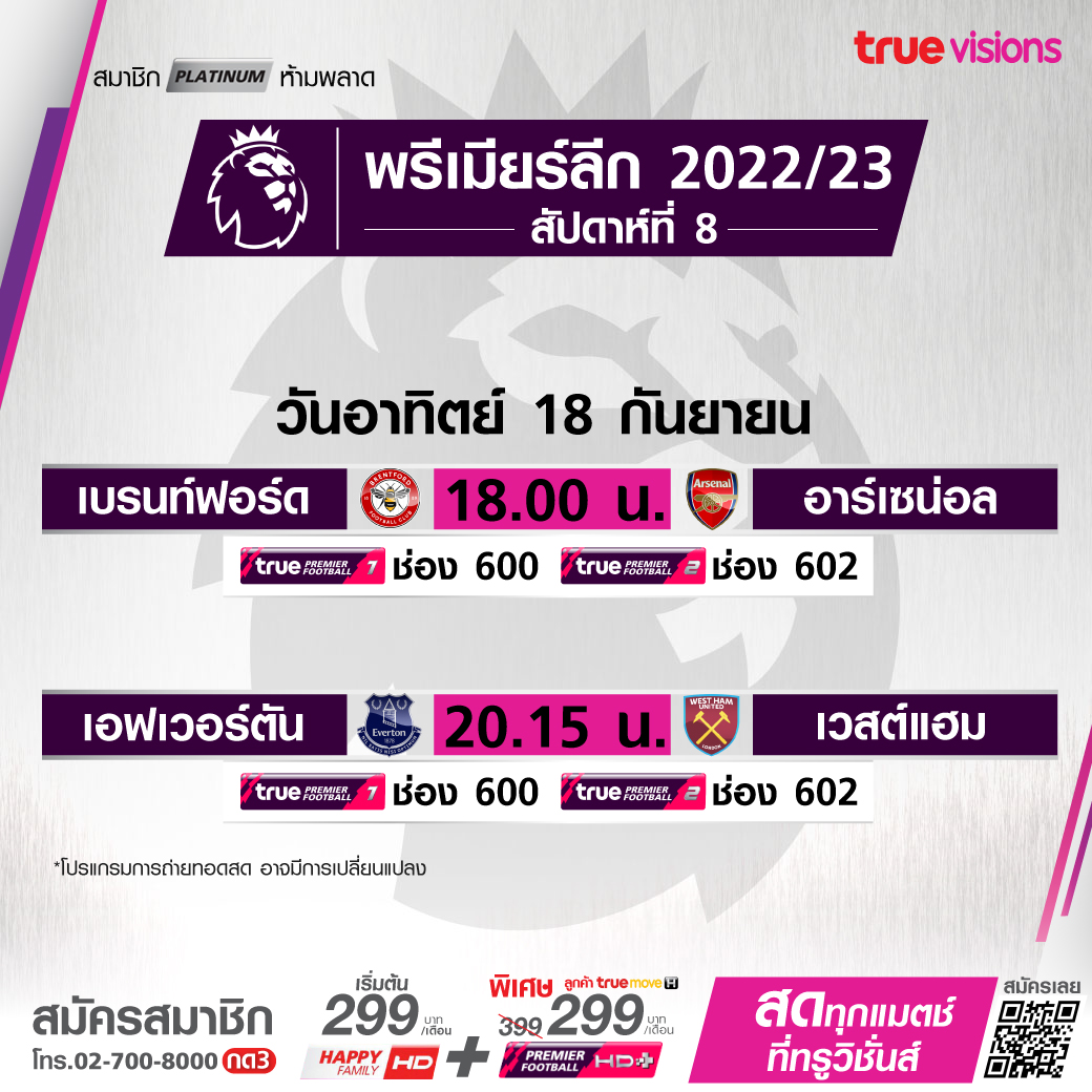 Brentford vs. Arsenal เวลา 18.00-20.00 ทางช่อง TPF 1(600) /TPF 2 (602)