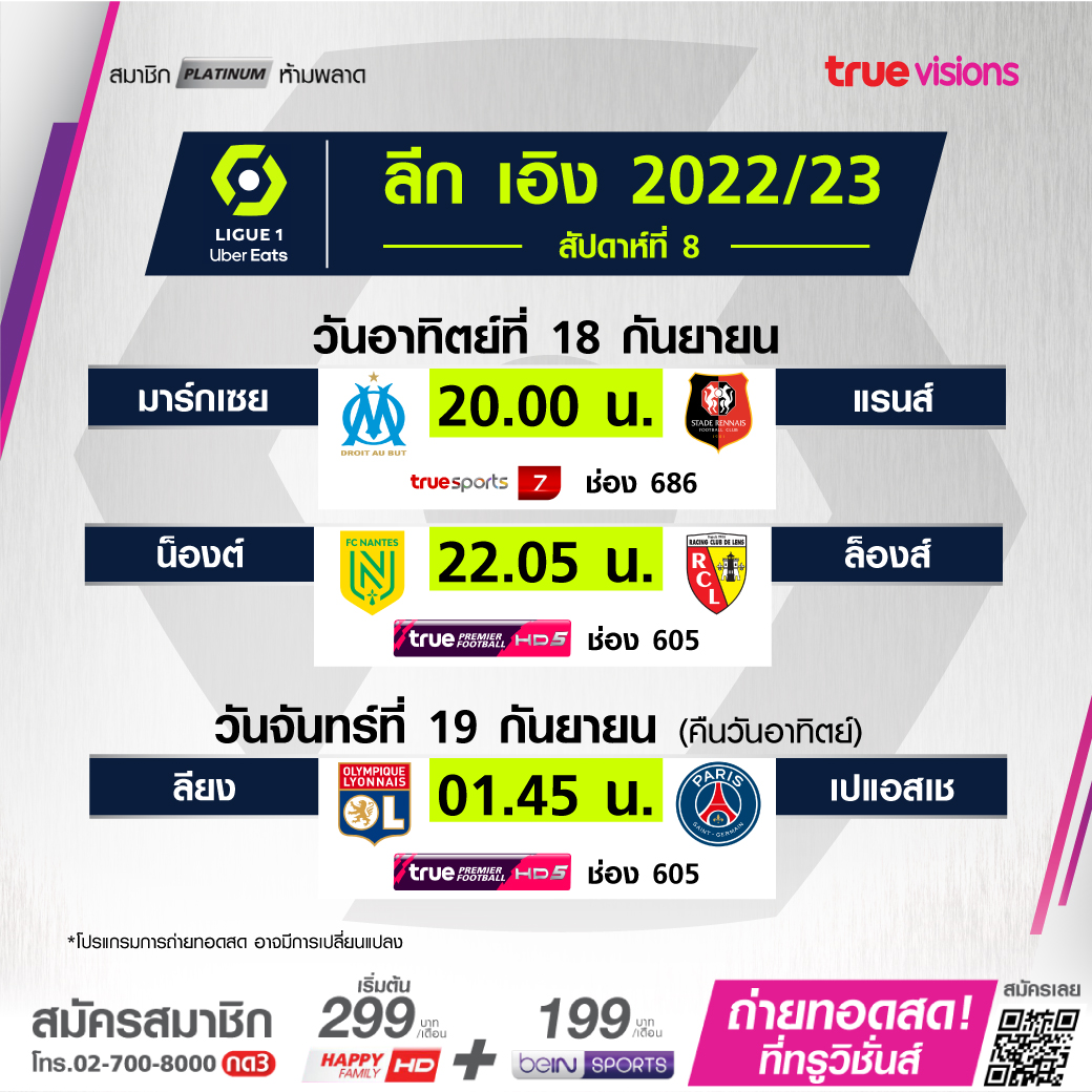 Marseille vs. Rennes เวลา 20.00-22.00 ทางช่อง TS7 (686)
