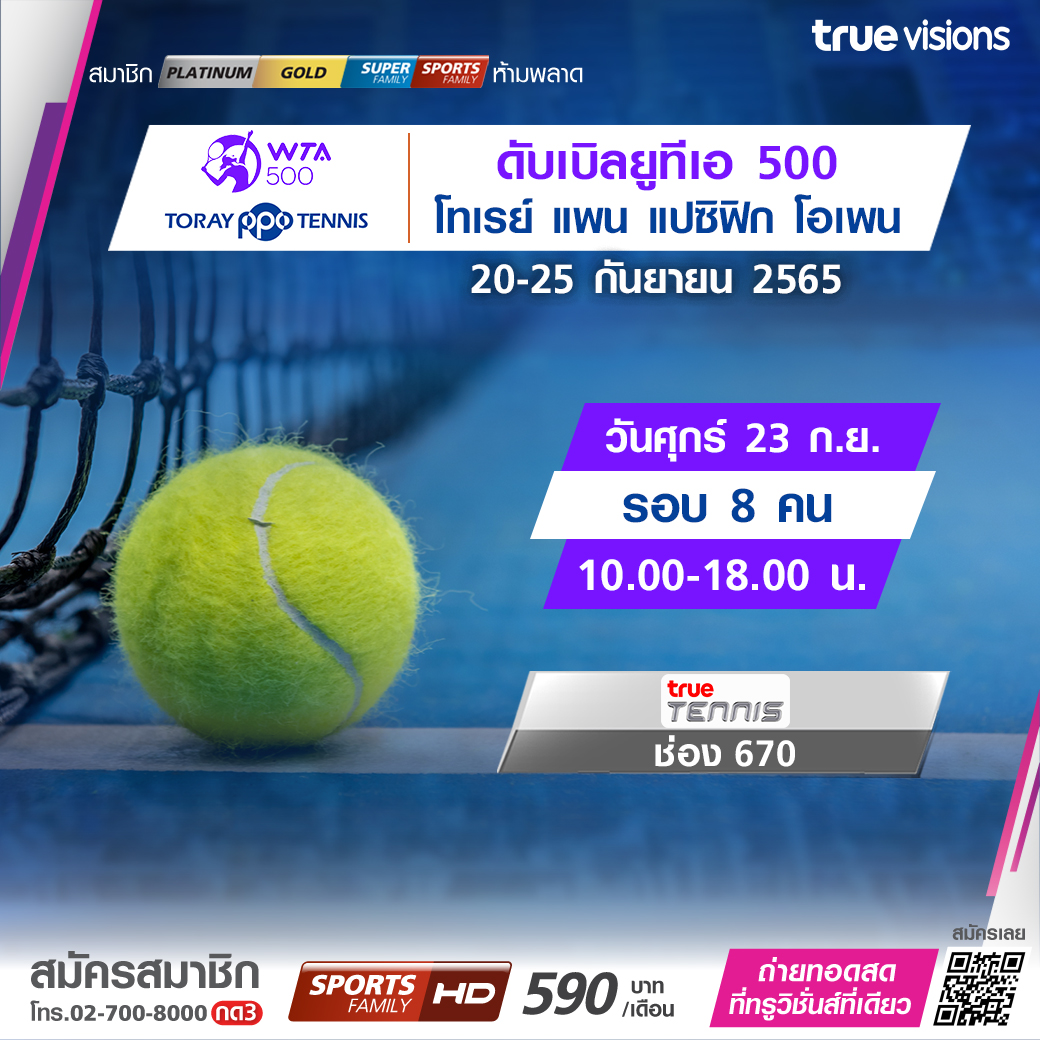 เทนนิสหญิง ดับเบิลยูทีเอ ทัวร์ 500 ซีรีส์ รายการสุดคลาสสิก โทเรย์ แพน แปซิฟิค โอเพ่น เดินทางมาถึงรอบ 8 คนสุดท้าย มือระดับโลกแย่งแชมป์กันอย่างคับคั่ง ชมสด ทางทรูวิชั่นส์ ที่เดียว