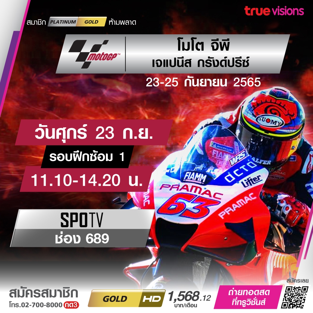 ศึกสองล้อระดับโลก โมโต จีพี เคลื่อนทัพจากยุโรปสู่ทวีปเอเชีย ดวลเดือดกันที่แดนอาทิตย์อุทัย กับศึก เจแปนนิส กรังด์ปรีซ์ ชมสดครบจุใจทั้ง 3 รุ่น และเชียร์นักบิดหนึ่งเดียวของไทย ก้อง สมเกียรติ จันทรา ในรุ่น โมโต 2 ทาง ทรูวิชั่นส์
