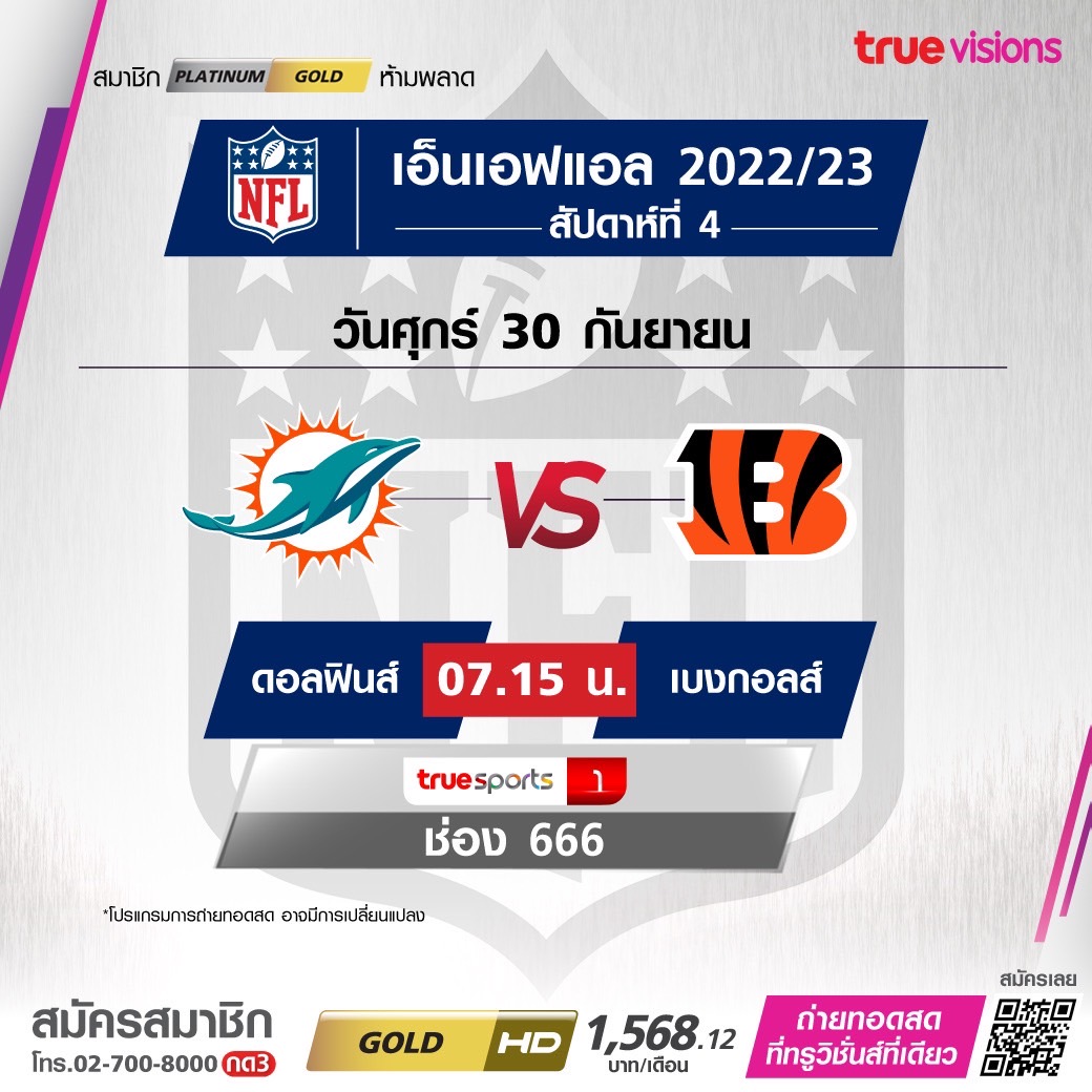 วันศุกร์ 30 Dolphins vs Bengals เวลา 07.15 ทางช่อง TS1 (666)