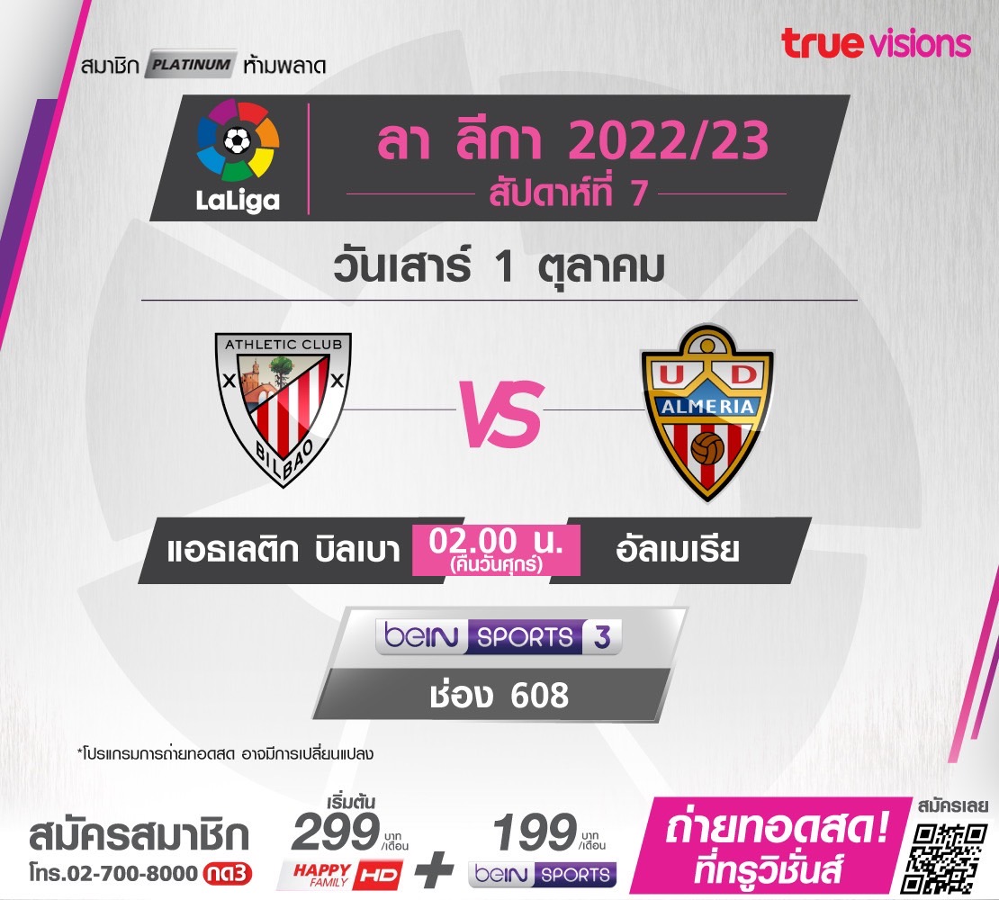 Athletic vs. Almeria เวลา 02.00-04.00 ทางช่อง beIN Sports 3 (608)