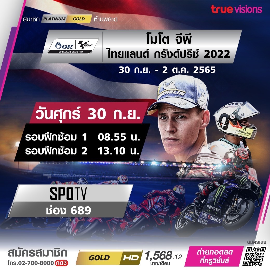 การรอคอยของแฟนๆ กีฬาความเร็วในเมืองไทยสิ้นสุดลงแล้ว ศึกใหญ่ระดับโลกคัมแบ็กมาสร้างประสบการณ์ความสนุกเร้าใจของ โมโต จีพี ไทยแลนด์ กรังด์ปรีซ์ ที่ ช้าง อินเตอร์เนชั่นแนล เซอร์กิต จังหวัดบุรีรัมย์ นักบิดระดับเทพๆ ของวงการมากันครบ และร่วมให้กำลังใจ ก้อง สมเกียรติ จันทรา ลุ้นแชมป์ในบ้านเกิด ชมสดครบทุกช่วง ชมสด ทางทรูวิชั่นส์ ที่เดียว