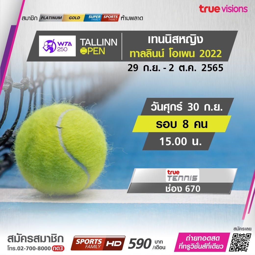 เทนนิสหญิงระดับโลกจาก WTA Tour ยังมีให้แฟนๆ ได้ชมกันต่อเนื่อง สัปดาห์นี้กลับมาแข่งในทวีปยุโรป กับ รายการ ทาลลินน์ โอเพ่น ที่ประเทศเอสโตเนีย มือระดับท็อปของทัวร์ลงแย่งแชมป์กันคึกคัก ชมสดครบจุใจ ชมสด ทางทรูวิชั่นส์ ที่เดียว