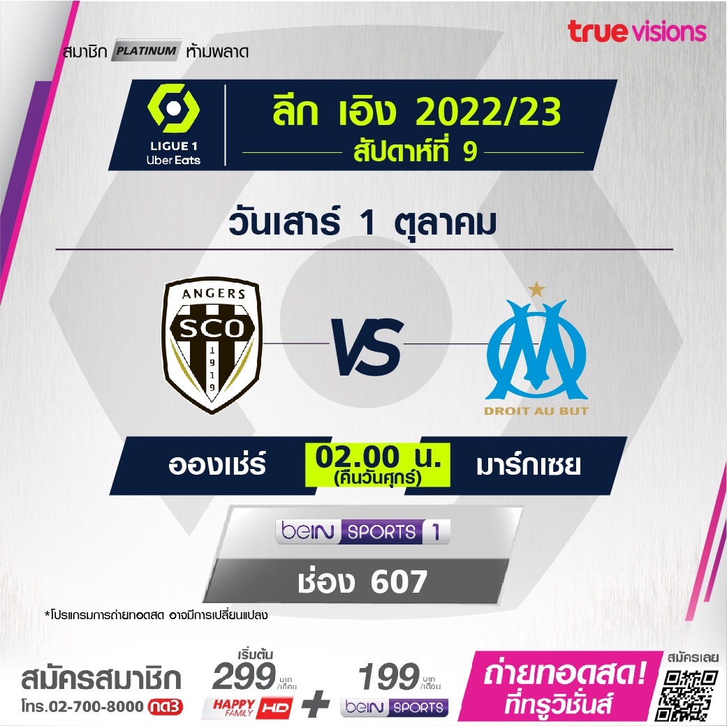 Angers vs. Marseille เวลา 02.00-04.00 ทางช่อง beIN Sports 1 (607)