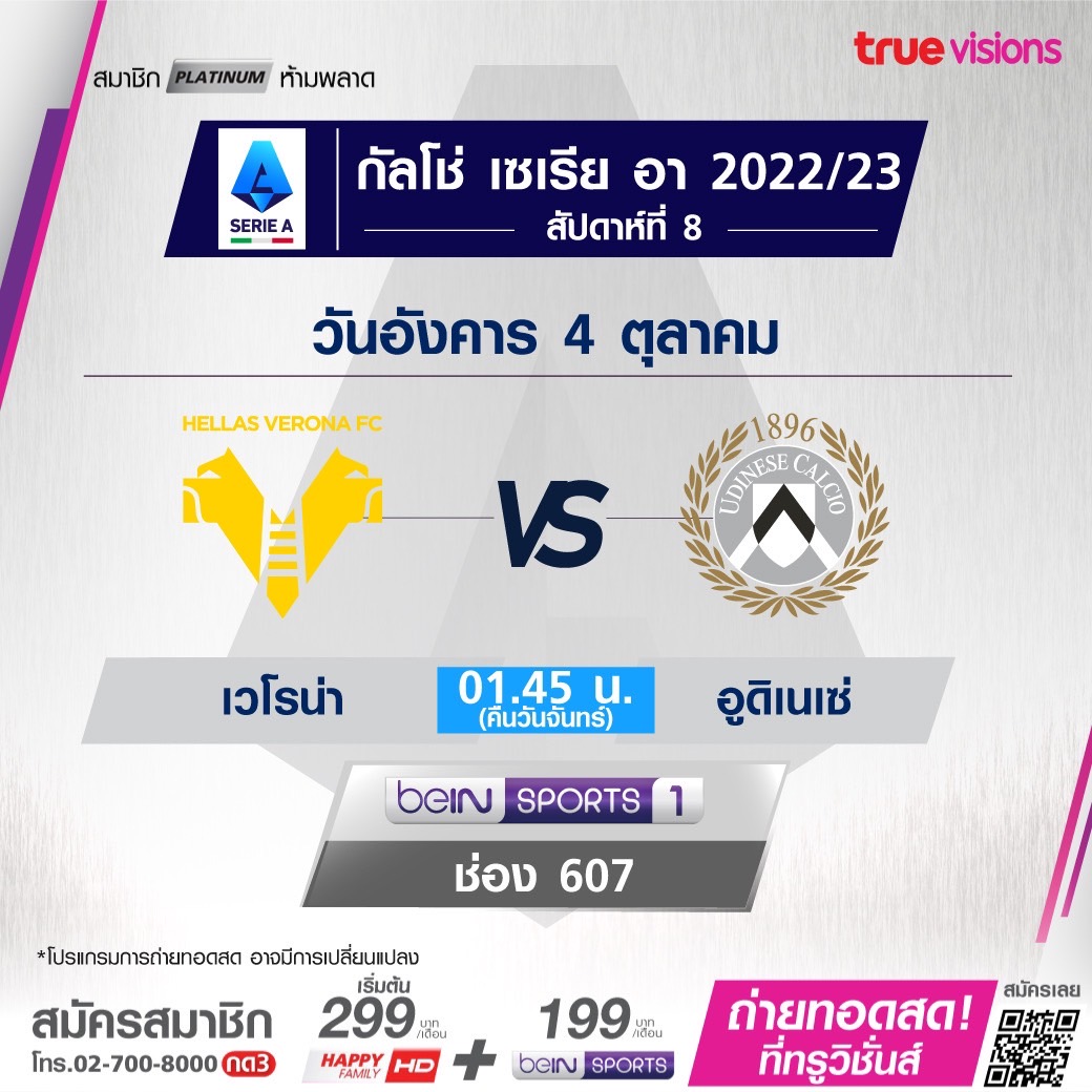 Verona vs. Udinese เวลา 01.45-03.45 beIN Sports 1 (607)