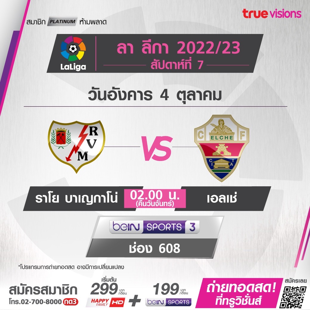 Rayo vs. Elche เวลา 02.00-04.00 beIN Sports 3 (608)