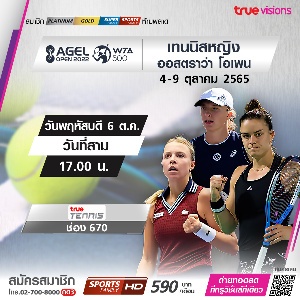 เทนนิส ดับเบิ้ลยูทีเอ 500 ออสตราว่า โอเพ่น ที่ประเทศสาธารณรัฐเช็ก ลุ้นแชมป์รายการใหญ่ระดับซีรีส์ ใครจะเป็นแชมป์ของปีนี้ ชมสดครบ จุใจ ชมสด ทางทรูวิชั่นส์ ที่เดียว