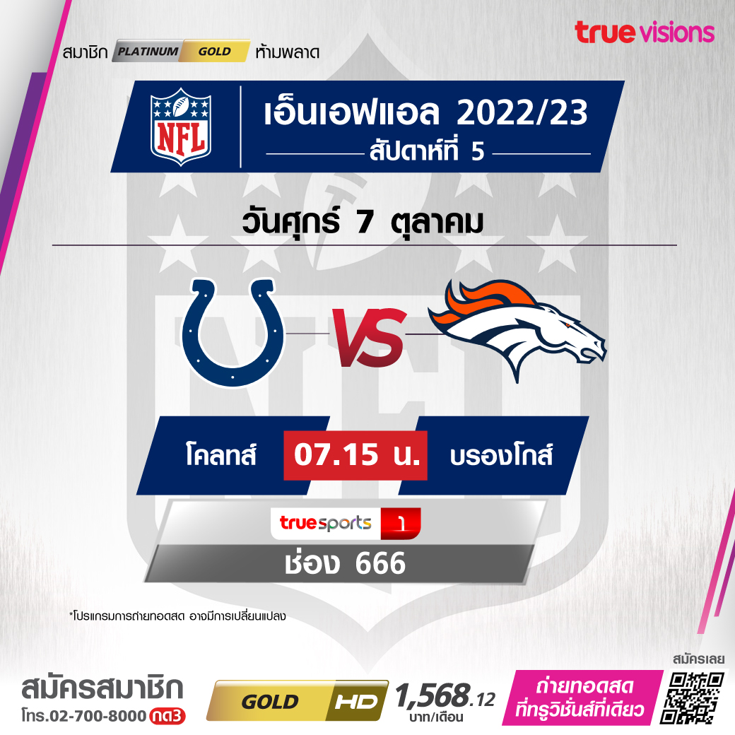 วันศุกร์ 7 Colts vs. Broncos เวลา 07.15-10.30 ทางช่อง TS1 (666)