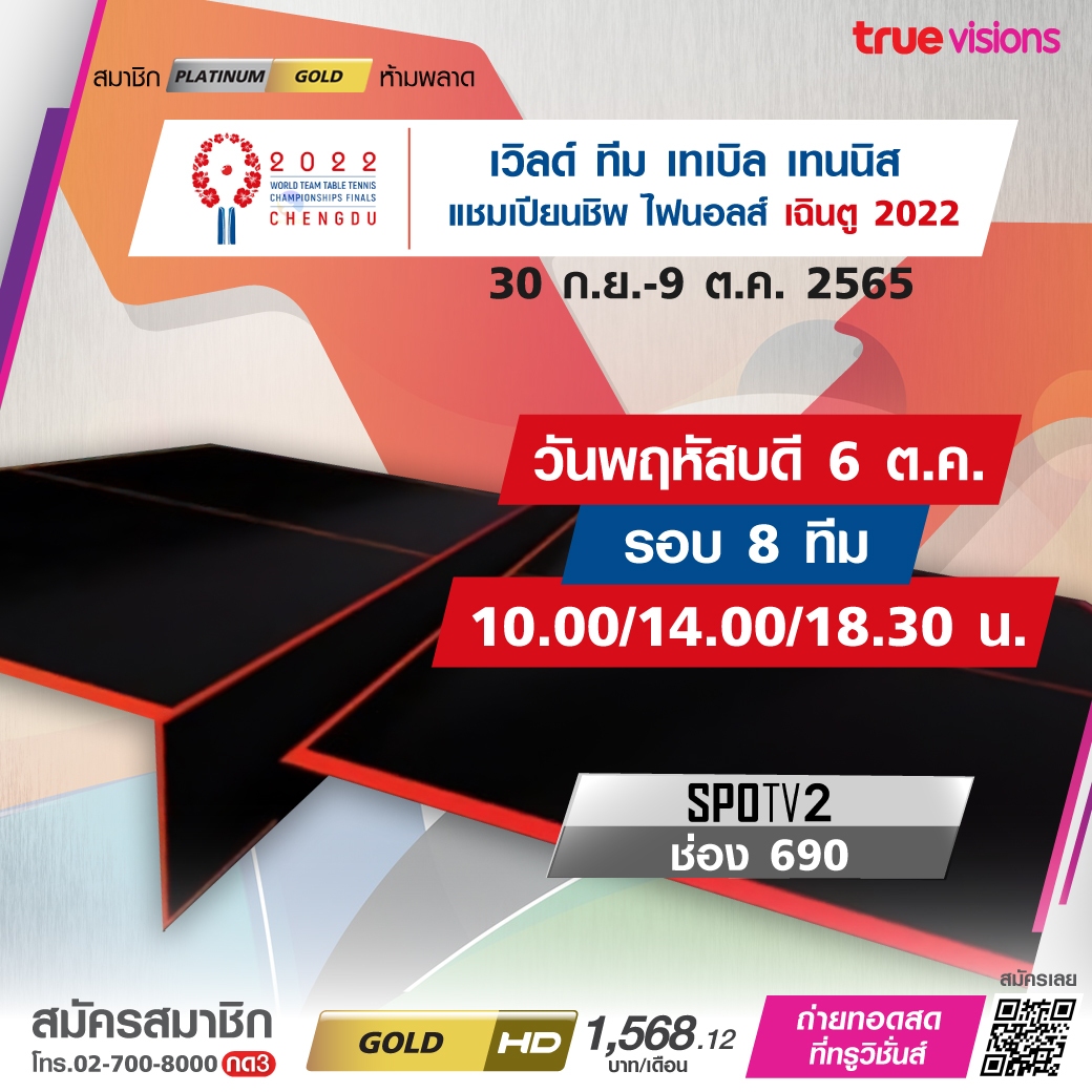 ยังคงเข้มข้นกับ เทเบิลเทนนิส ศึกใหญ่ระดับโลก รายการ เวิลด์ ทีม เทเบิลเทนนิส แชมเปี้ยนชิพ ไฟนอลส์ 2022 มาถึงรอบ 8 ทีมสุดท้ายทั้งทีมชายและทีมหญิง ชมสด ทางทรูวิชั่นส์
