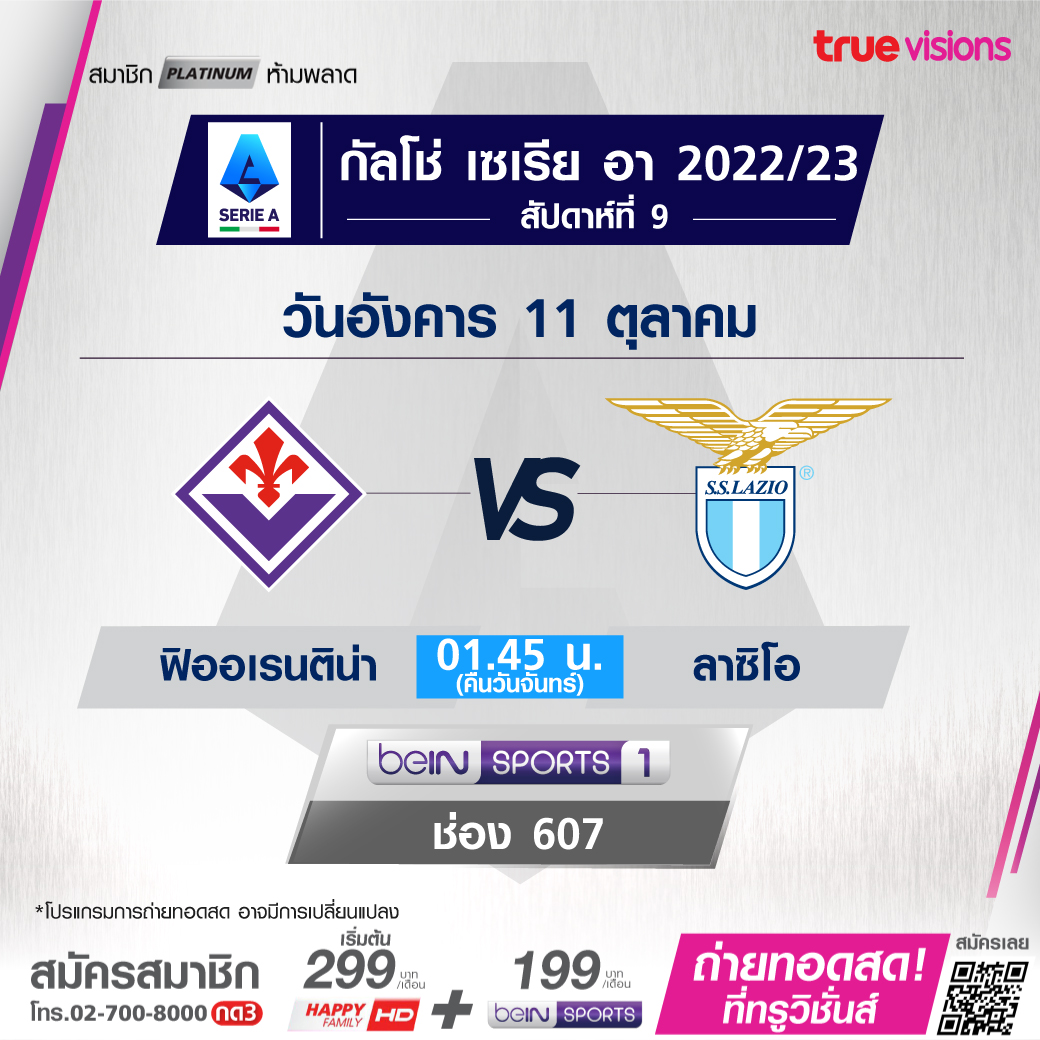 Fiorentina vs. Lazio เวลา 01.45-03.45 ทางช่อง beIN Sports 1 (607)