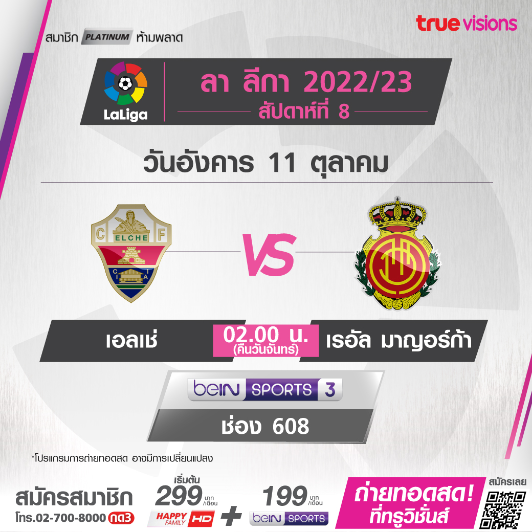 Elche vs. Mallorca เวลา 02.00-04.00 ทางช่อง beIN Sports 3 (608)