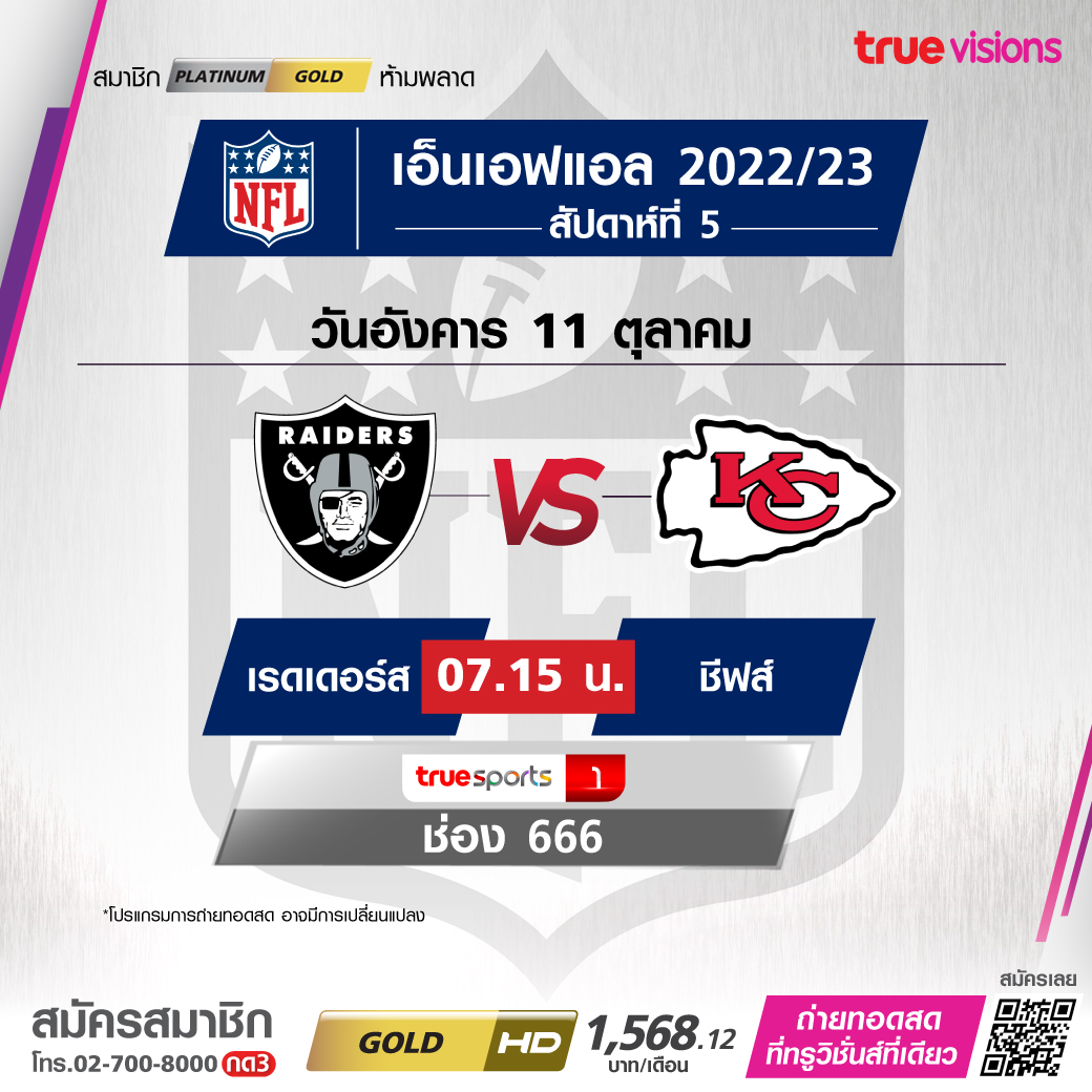 Raiders vs. Chiefs เวลา 07.15-10.30 ทางช่อง TS1 (666)