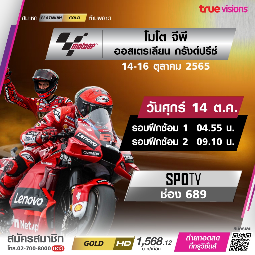 ลุ้นแชมป์โลกปี 2022 สุดมันส์ในช่วงโค้งสุดท้ายของฤดูกาล กับศึกโมโต จีพี เวิลด์ แชมเปี้ยนชิพ สนามที่ 18 รายการออสเตรเลียน กรังด์ปรีซ์ ที่ฟิลิป ไอส์แลนด์ ออสเตรเลีย ชมสดครบทั้ง 3 รุ่น ชมสด ทางทรูวิชั่นส์