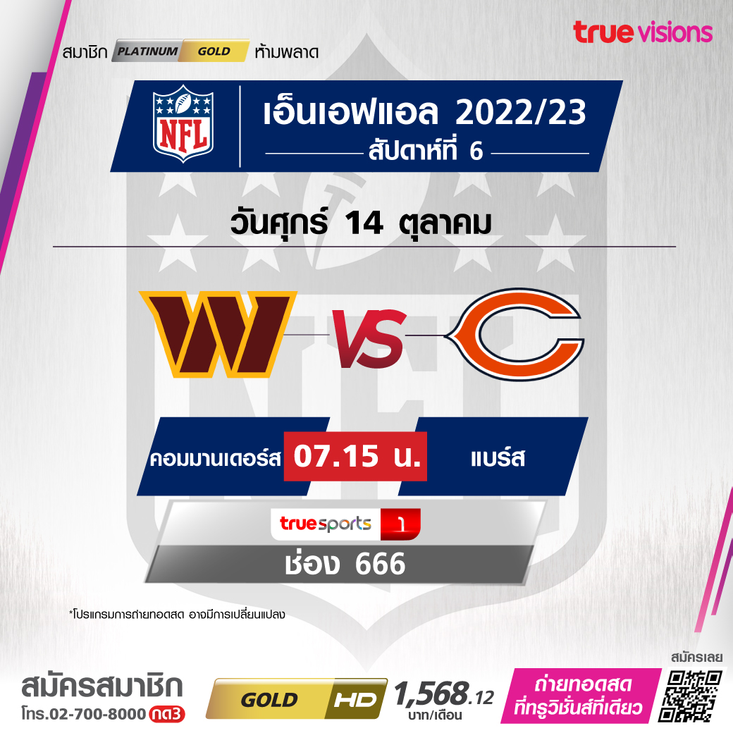 วันศุกร์ที่ 14 ตุลาคม Commanders vs. Bears เวลา 07.15-10.30 ทางช่อง TS1 (666)