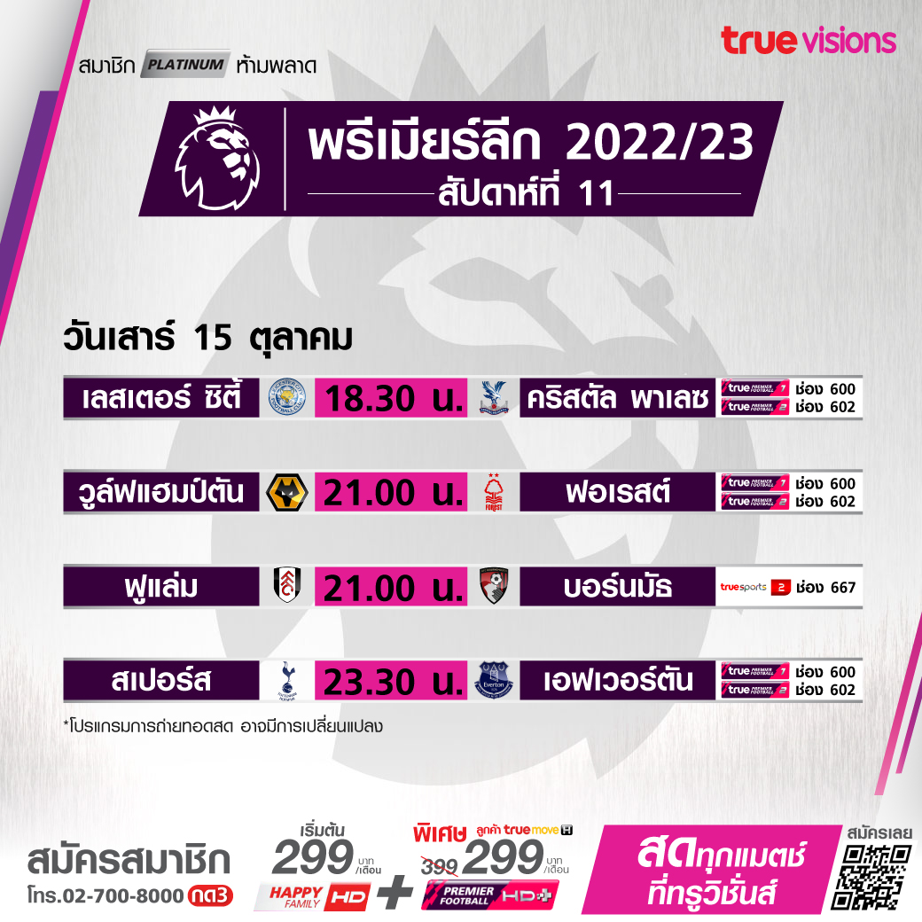 Wolves vs. Forest เวลา 21.00-23.00 ทางช่อง TPF 1 (600) / TPF 2 (602)