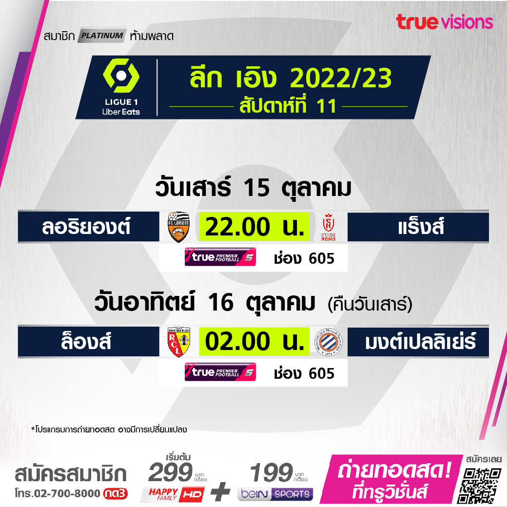 Lorient vs. Reims เวลา 22.00-02.00 ทางช่อง TPF 5 (605)