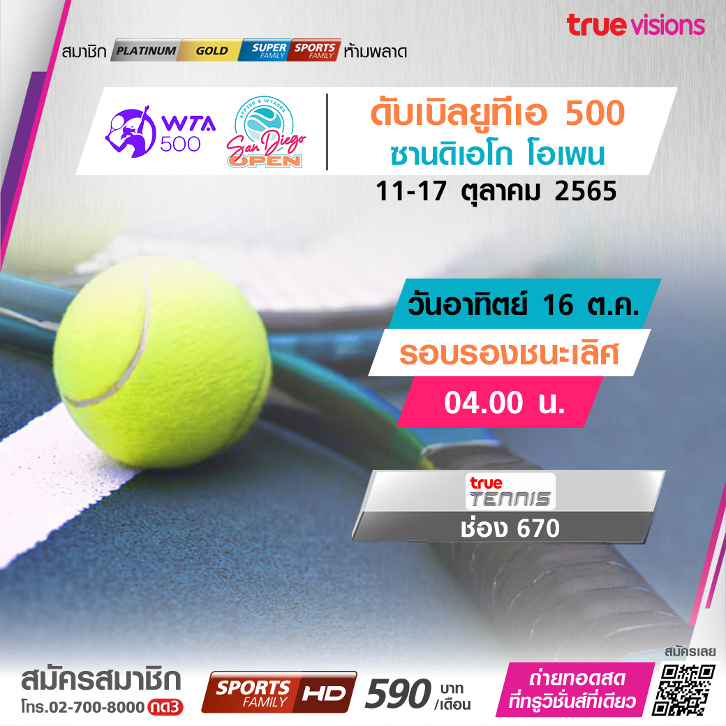 เทนนิสหญิง ซาน ดีเอโก้ โอเพ่น รายการสำคัญระดับ 500 ซีรี่ส์ เข้าสู่การแข่งขันในรอบรองชนะเลิศ นักเทนนิสคนไหนจะผ่านเข้าสู่รอบชิงชนะเลิศไปได้ ชมสดครบทุกรอบ ทางทรูวิชั่นส์ ที่เดียว
