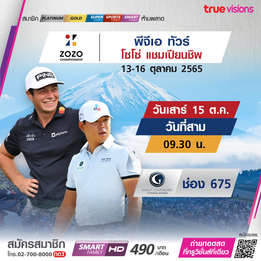 กอล์ฟพีจีเอ ทัวร์ รายการ โซโซ่ แชมเปี้ยนชิพ ที่สนาม แอ็คคอร์เดีย กอล์ฟ นาราชิโนะ คันทรี่ คลับ เมืองชิบะ ประเทศญี่ปุ่น ชิงเงินรางวัลรวม 11 ล้านเหรียญสหรัฐ ในวันที่สาม ชมสด ทางทรูวิชั่นส์ ที่เดียว