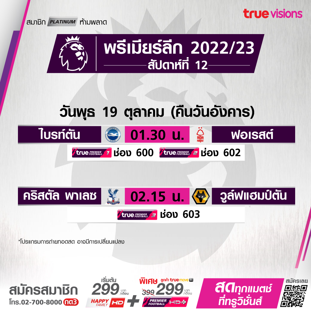 Brighton vs Nottingham Forest เวลา 01.30 ทางช่อง TPF 1 (600) / TPF2 (602)