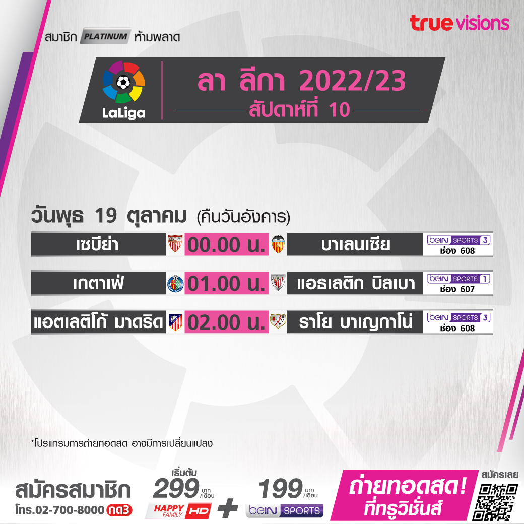 Atletico vs Rayo เวลา 02.00-04.00 ทางช่อง beIN Sports 3 (608)