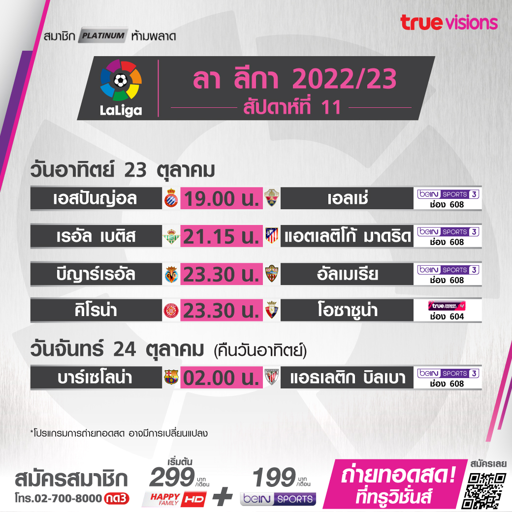 Girona vs. Osasuna เวลา 23.30-01.30 ทางช่อง TPF 4 (604)