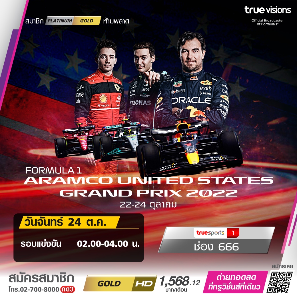 ศึกฟอร์มูล่า วัน สัปดาห์นี้ ข้ามทวีปไปกันที่ สหรัฐอเมริกา กับศึก ยูเอส กรังด์ปรีซ์ สดจาก เซอร์กิต ออฟ ดิ อเมริกาส์ เมืองออสติน รัฐเท็กซัสสนุกกันในรอบแข่งขันจริง ใครจะได้ขึ้นโพเดียมในสนามนี้ ชมสด ทางทรูวิชั่นส์ ที่เดียว