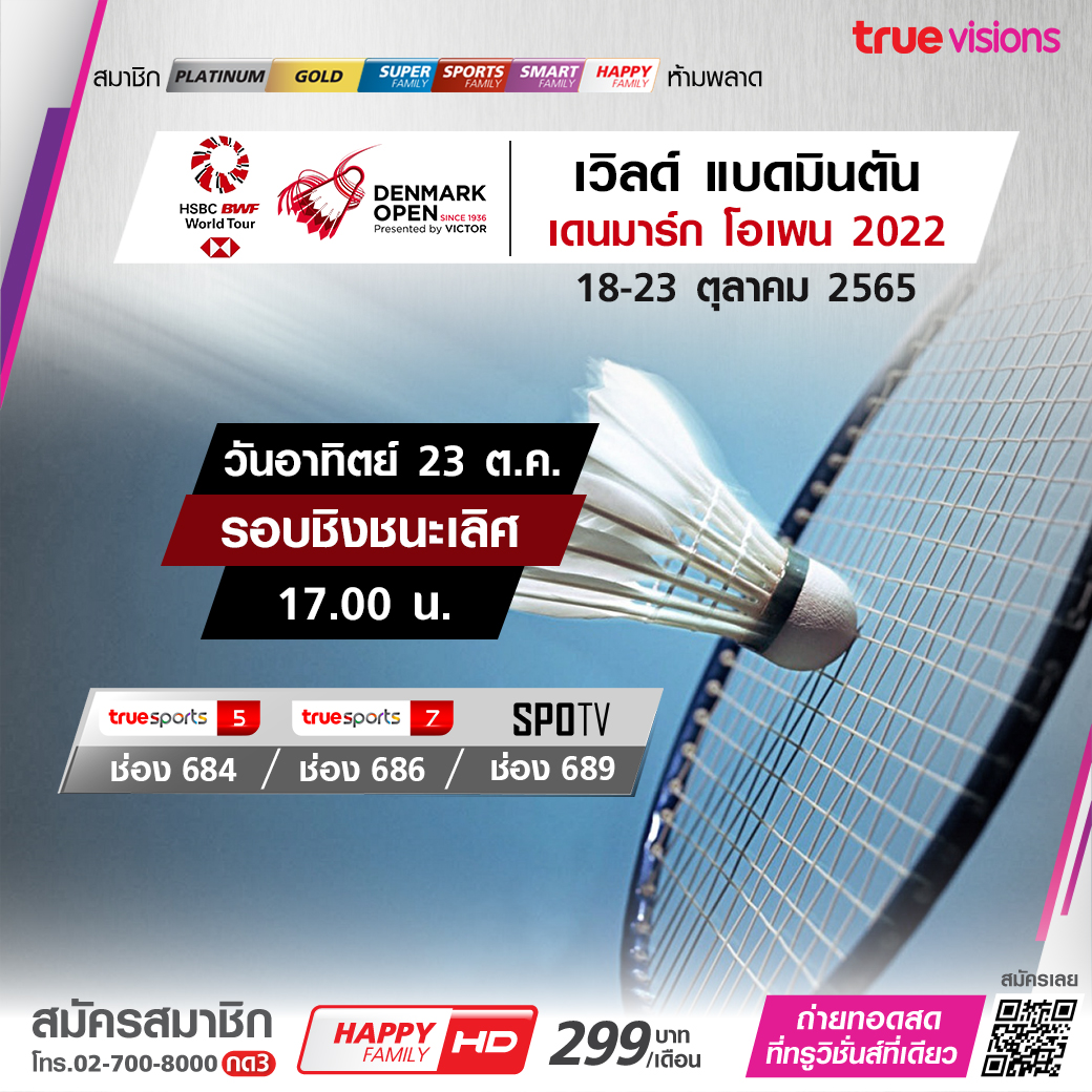 การแข่งขันแบดมินตันระดับโลก เดนมาร์ก โอเพ่น รายการใหญ่ระดับเวิลด์ ทัวร์ ซูเปอร์ 750 เดินทางมาถึงในรอบชิงชนะเลิศแล้ว ชมสด จุใจ ทางทรูวิชั่นส์ ที่เดียว