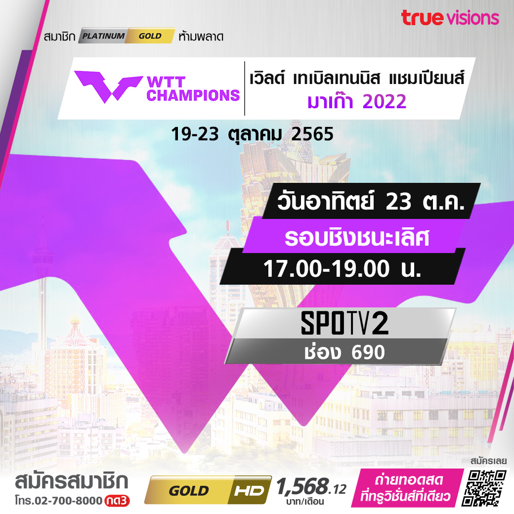 เดือดแน่นอน !!! เมื่อบรรดาเทพของวงการเทเบิลเทนนิสโลกไปรวมตัวกันที่มาเก๊า เพื่อร่วมศึกใหญ่ เวิลด์ เทเบิลเทนนิส แชมเปี้ยนส์ มาเก๊า 2022 ชิงเงินรางวัลมากถึง 800,000 เหรียญสหรัฐ ลุ้นกันว่าชาติใดจะคว้าแชมป์ไปครอง ชมสด จุใจ ทางทรูวิชั่นส์ ที่เดียว