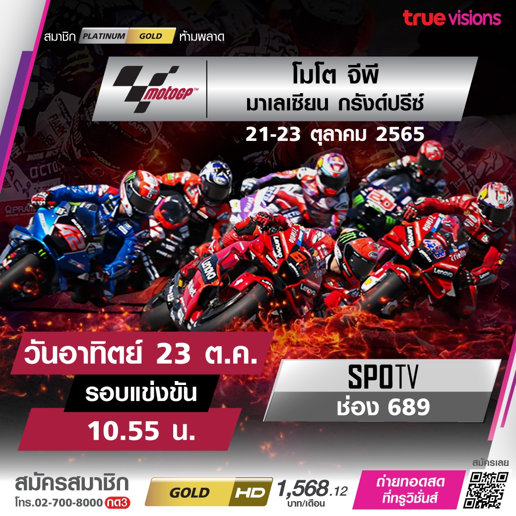 โค้งสุดท้ายของฤดูกาล อะไรก็เกิดขึ้นได้ ลุ้นสุดตัวว่าใครจะก้าวขึ้นสู่ตำแหน่งแชมป์โลก โมโต จีพี ปีนี้ จับตาดู มาเลเซียน กรังด์ปรีซ์ ลุ้นกันสดๆ ในรอบการแข่งขันจริง ชมสด ทางทรูวิชั่นส์