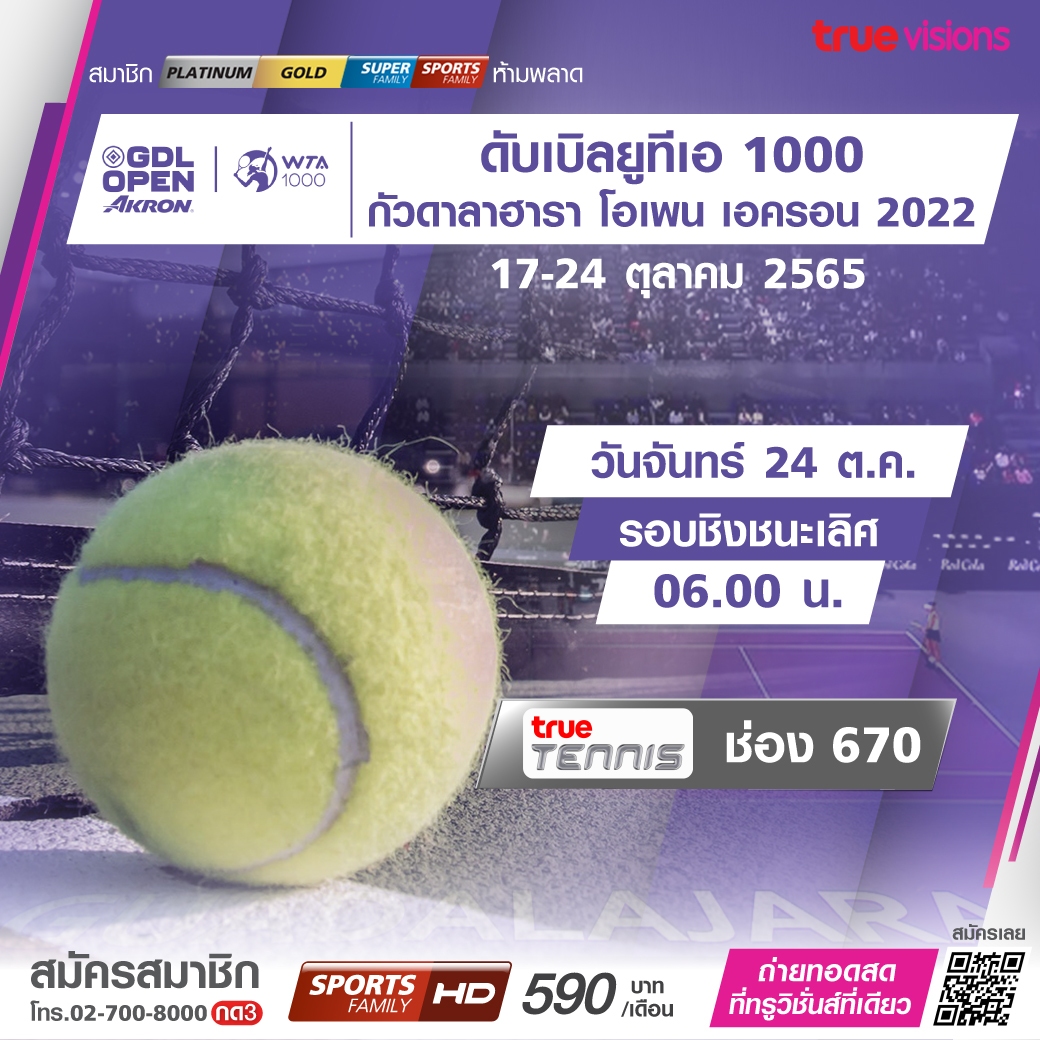 ดับเบิลยูทีเอ ทัวร์ รายการใหญ่ ระดับ 1000 ซีรี่ส์ กวาดาลาฮาร่า โอเพ่น เอครอน มาถึงรอบชิงชนะเลิศแล้ว ใครจะคว้าแชมป์ ใครจะไปต่อในรายการปิดท้ายปี ดับเบิ้ลยูทีเอ ไฟนอลส์ ชมสด ทางทรูวิชั่นส์ ที่เดียว
