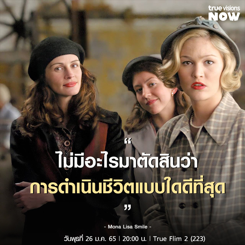 ติดตามได้ ใน 'Mona Lisa Smile - โมนา ลิซ่า: ขีดชีวิต เขียนฝัน ให้บานฉ่ำ' วันพุธที่ 26 ม.ค. 65 เวลา 20:00 น. ทาง True Flim HD2 (223)